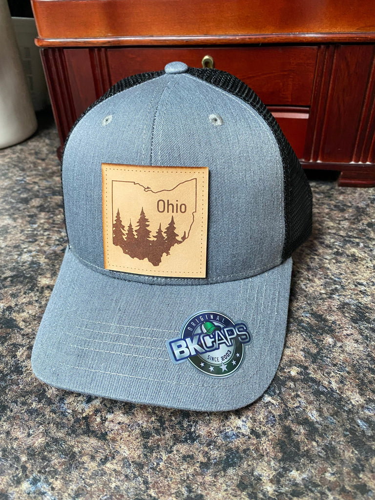 Custom Leather Patch Hat. Ohio Leather Truck Hat. Laser Engraved Patch Hat.