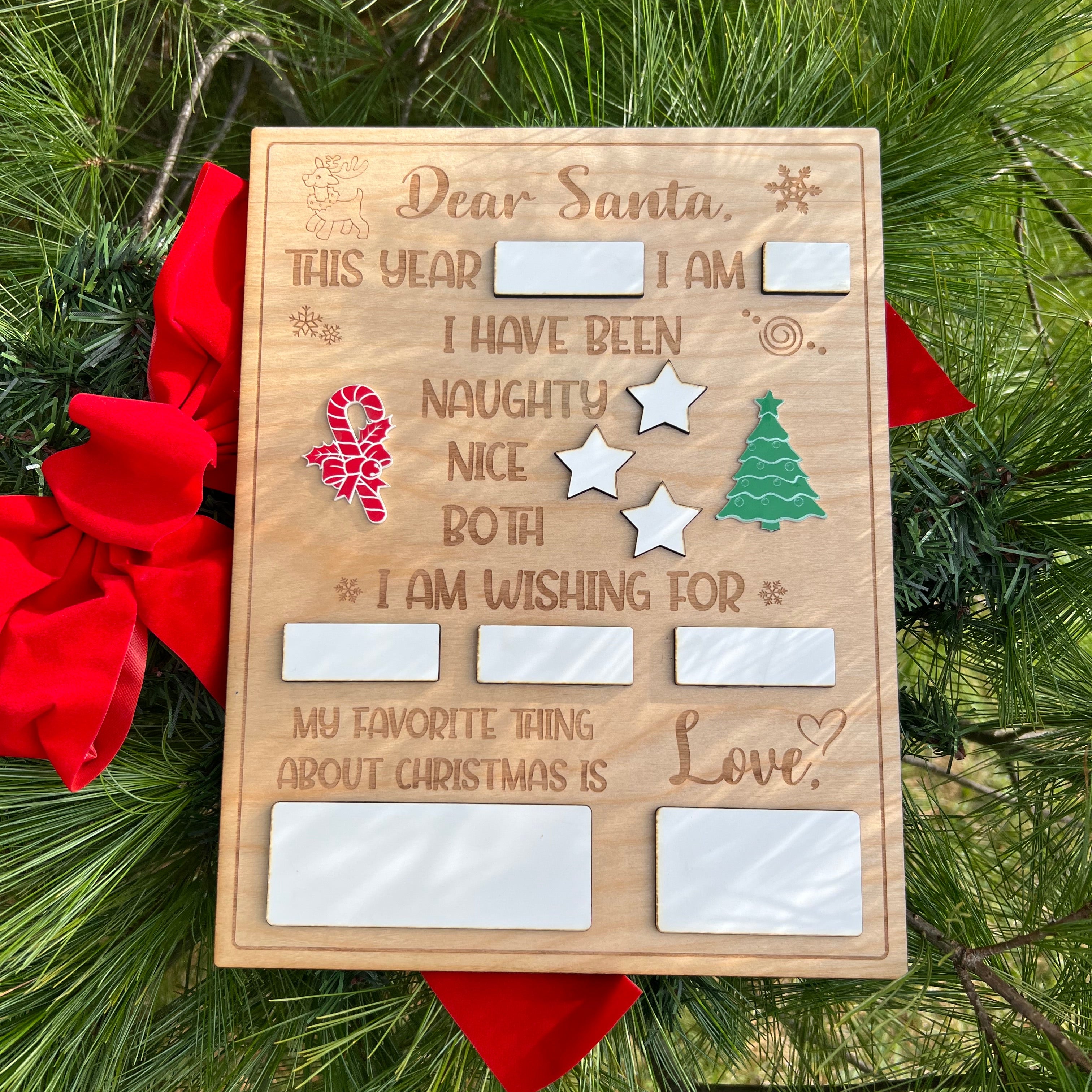 Dear Santa Engraved Wood Sign. Reusable Christmas Board for Kids. Yearly Christmas Sign.