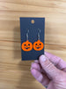Halloween Dangle Earrings. Pumpkin Face Earrings. Costume Jewelry.