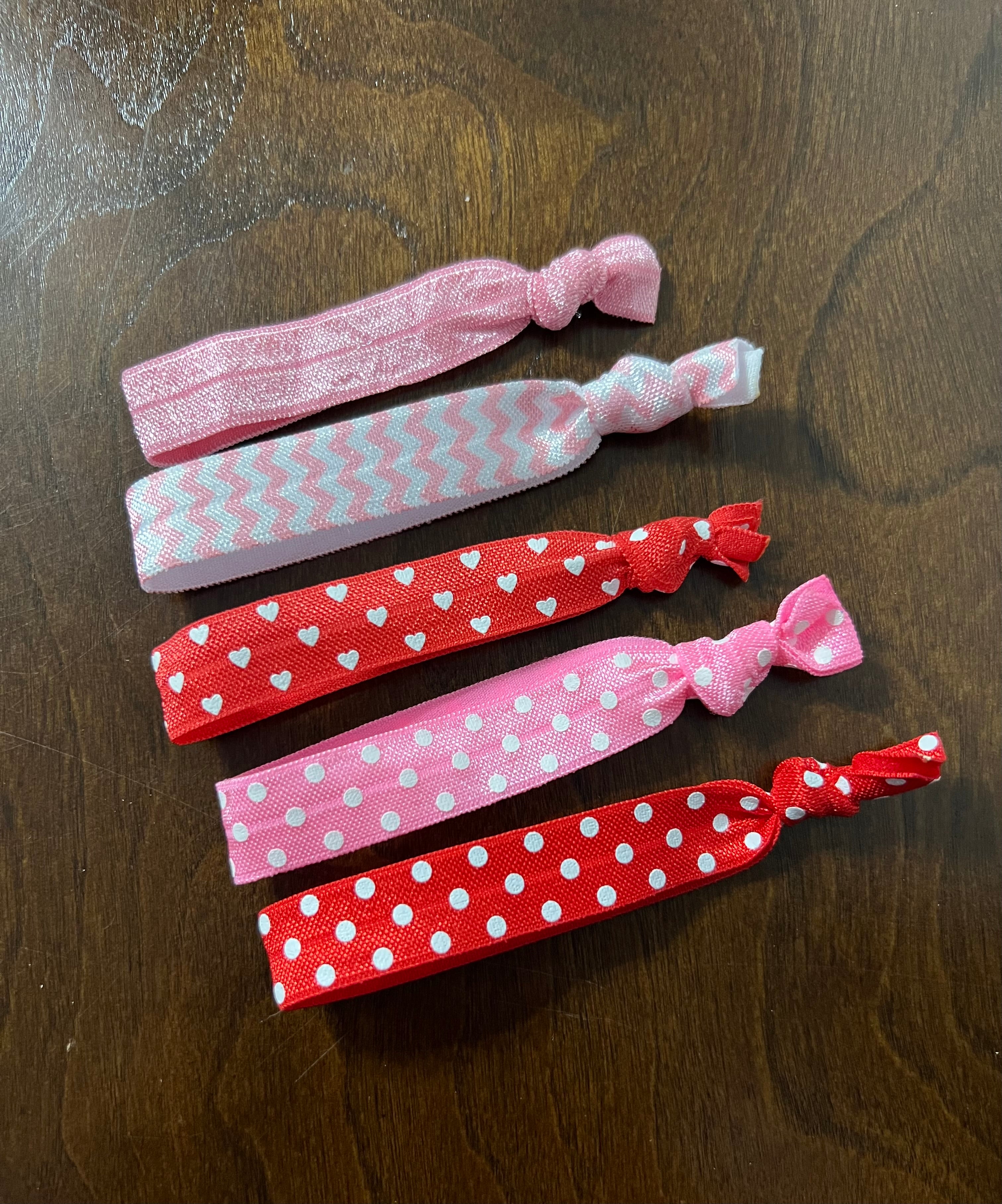 Valentine’s Day Elastic Ponytail Holder. Pink and Red Hair Ties.